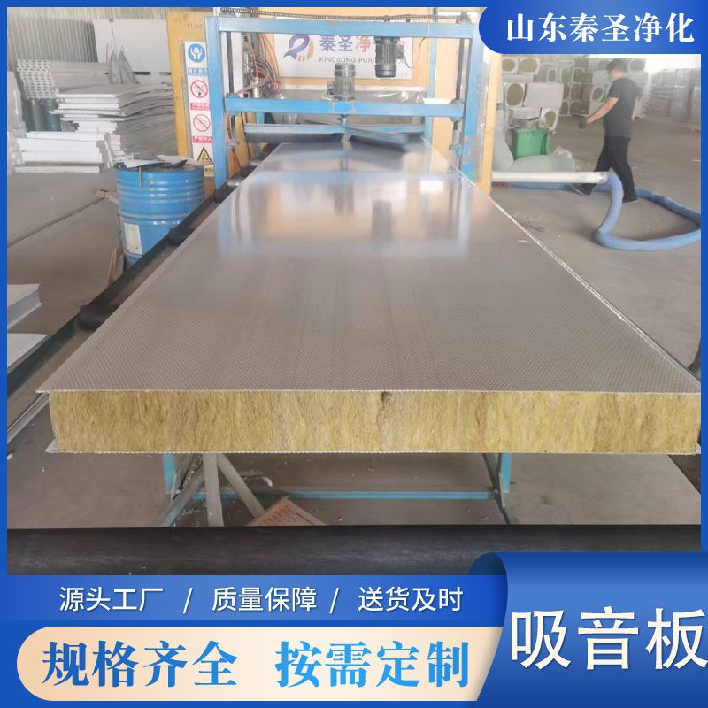 采用0.5-1.0mm彩涂板、鍍鋅板或不銹鋼板沖微孔處理;微孔直徑一般為2.5mm,微孔中心孔距5mm,并成60度角排列,穿孔率達到23%,由于吸音復(fù)合板面板是有孔的彩鋼而芯材是采用巖棉或玻璃棉復(fù)合成型,能很好的阻止空氣流動,使聲波受到阻礙,提高了吸聲系數(shù),同時提高了板材自身強度。板材的有效寬度為950/1150mm,厚度為50-150mm。長度按客戶要求定做。板面保護形式為覆PVC保護膜。